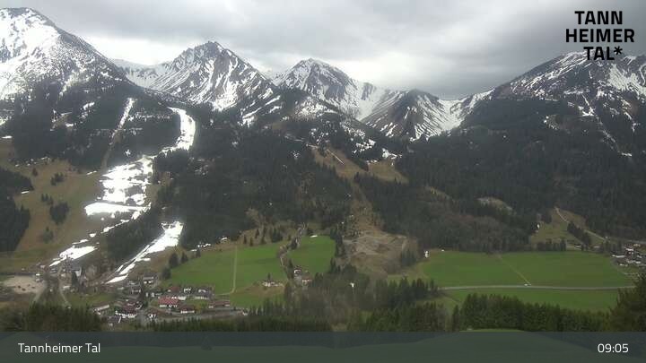 From Upper Halde in Zöblen, this webcam looks upon Tannheim Valley.
