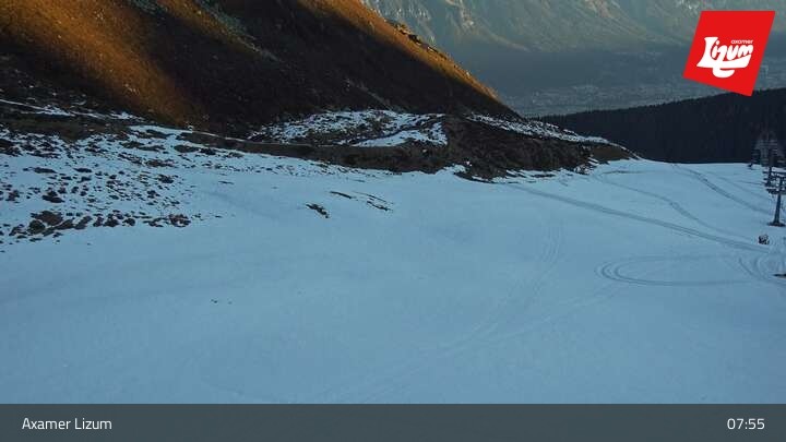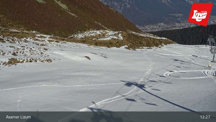 The webcam is located at the top station of the Karleiten chairlift in Axamer Lizum.