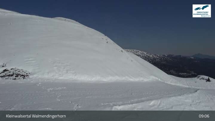You can see the summit of the Walmendingerhorn and the upper station of its aerial tramway in Kleinwalsertal.