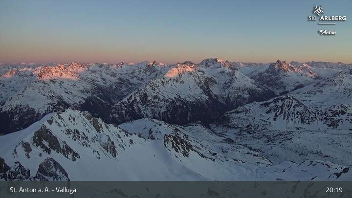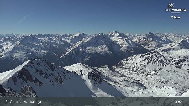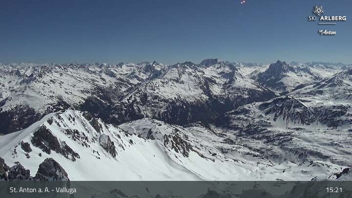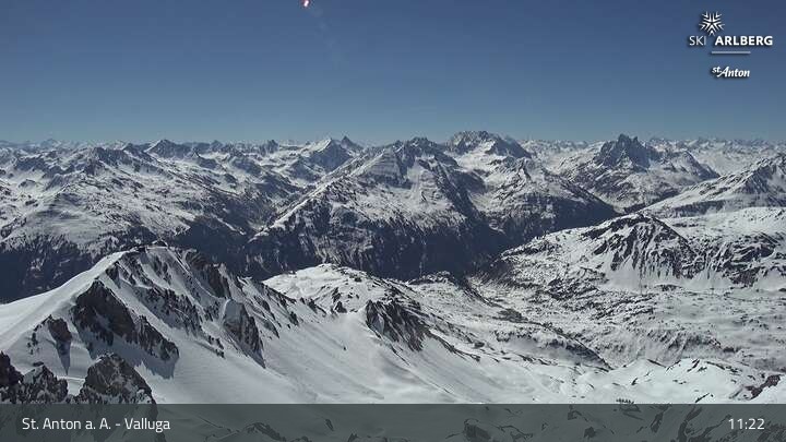 This webcam shows you the view at Valluga mountain (2.809 meters) in the western Lechtal Alps.