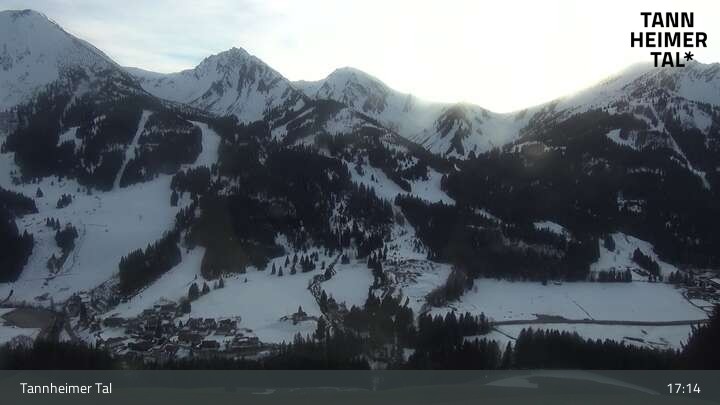 From Upper Halde in Zöblen, this webcam looks upon Tannheim Valley.