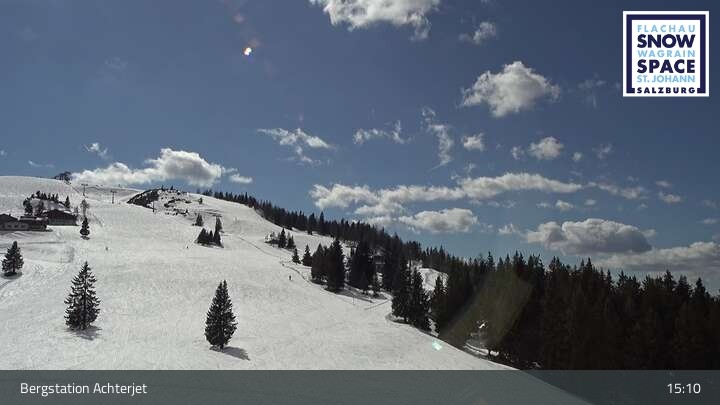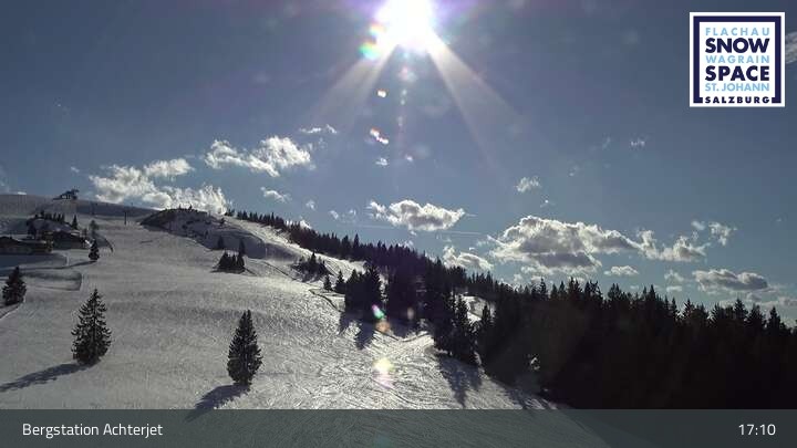 View from the top station of Achter Jet in Flachau over the surrounting Alps.