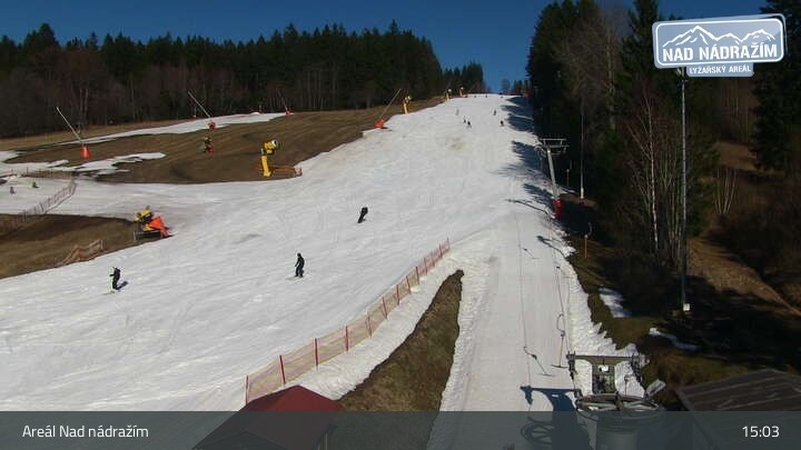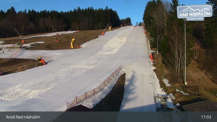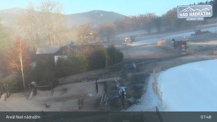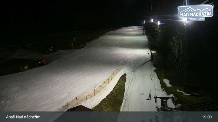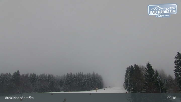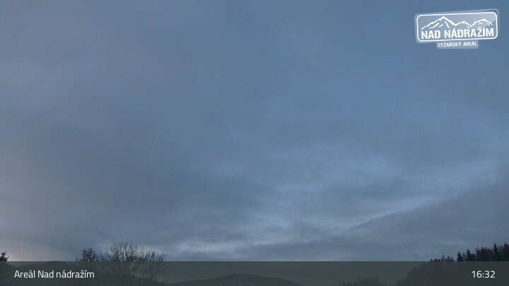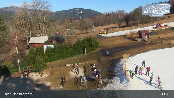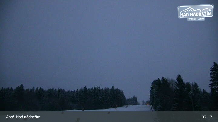The webcam shows the ski lifts in the area Nad nádražím near Železná Ruda near the German border.