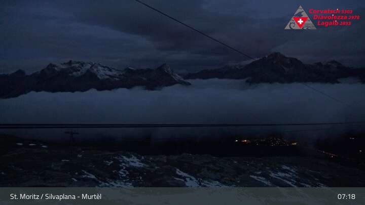 View over the Upper Engadine lakes in Graubünden from the Murtel station.