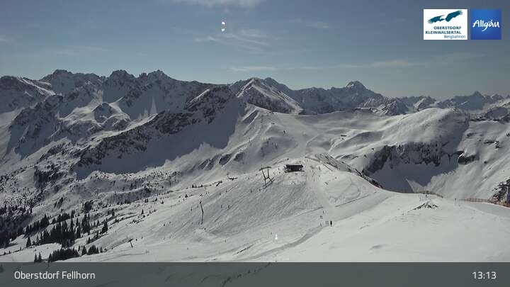 The webcam shows the scenery surrounding the top station of Fellhornbahn in Oberstdorf in Bavaria.
