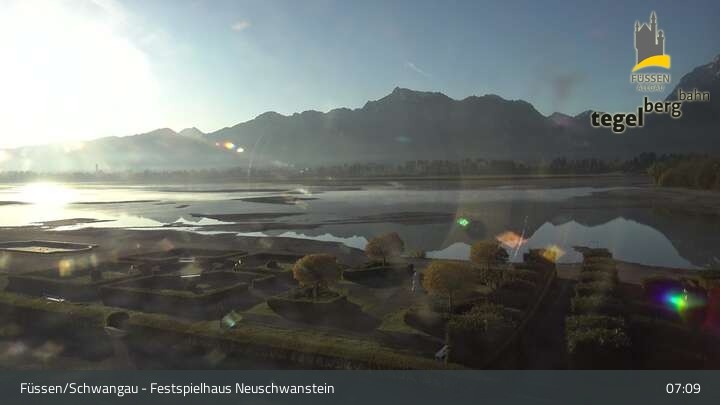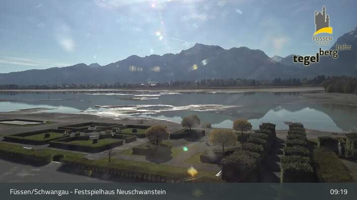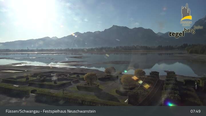 The webcam looks upon the gardens of Ludwigs Festspielhaus, a theatre in Füssen.