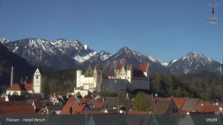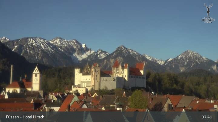 View of High Palace in Füssen. Webcam is located at Hotel Hirsch.