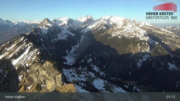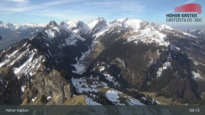 360 degree view from the restaurant on Hoher Kasten over the surrounding Swiss Alps.
