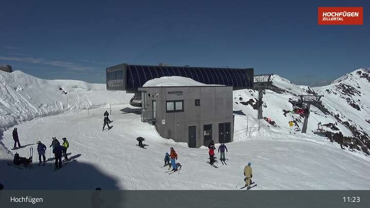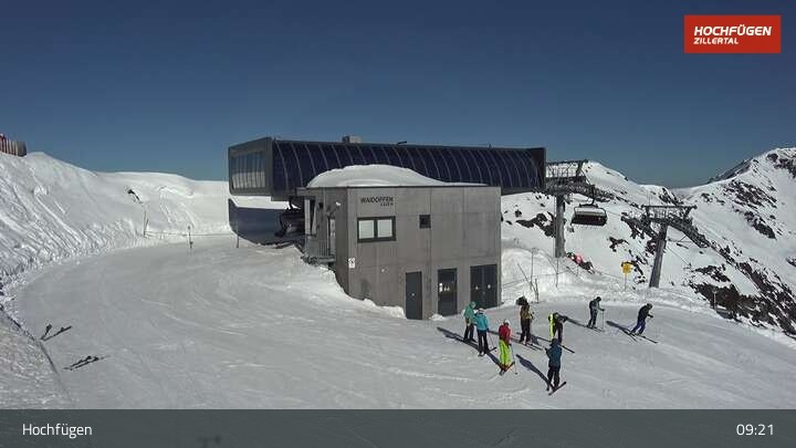Located at the upper station of the chair lift Waidoffen (2.330m) the webcam shows the surrounding Zillertal Alps.