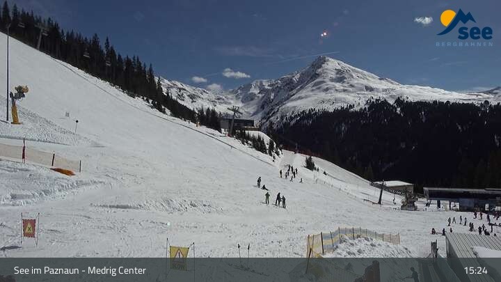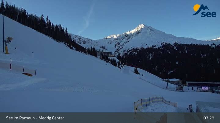 The webcam in See opens the view from the Medrig Center at about 1,800 meters to the top station of the Medrigjoch gondola.