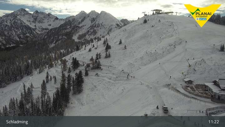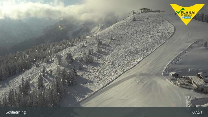 Located at the top station of the Planai gondola the webcam shows Mt. Planai in Schladming.
