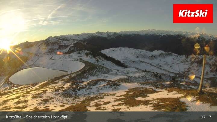 This webcam overlooks Hornköpfl reservoir pond as well as the Alps around Kitzbühel.