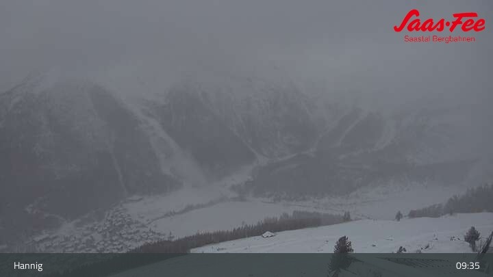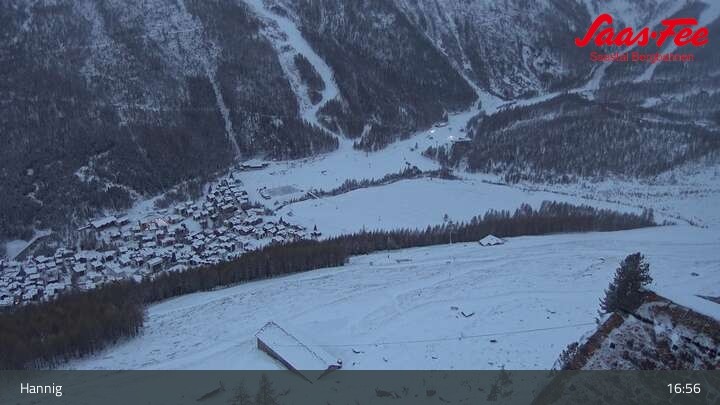 The webcam opens a beautiful view from the top station of Hannig over Saas-Fee in the Swiss canton Valais.