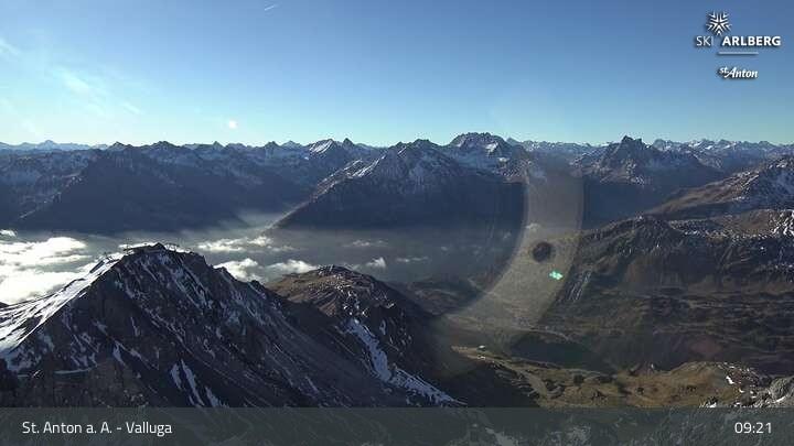 This webcam shows you the view at Valluga mountain (2.809 meters) in the western Lechtal Alps.