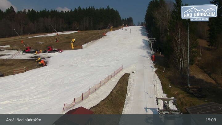 The webcam shows the ski lifts in the area Nad nádražím near Železná Ruda near the German border.