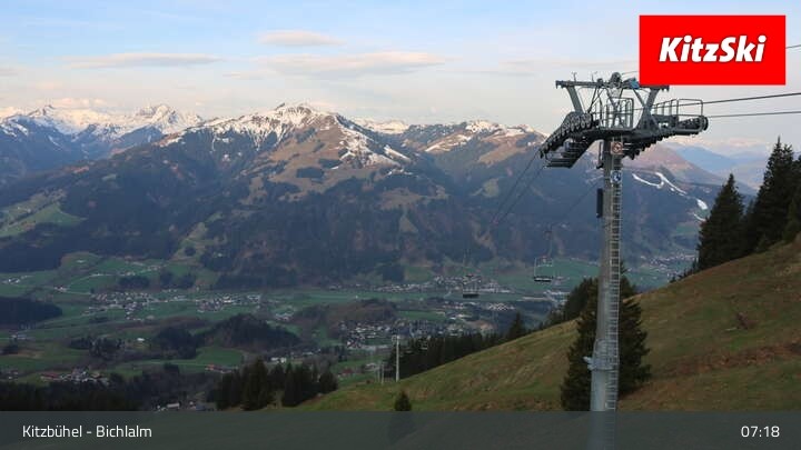 From Bichlalm lift's top station, this webcam provides a great view over the Alpine landscape around Kitzbühel.