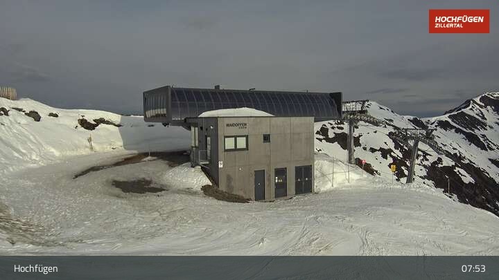 Located at the upper station of the chair lift Waidoffen (2.330m) the webcam shows the surrounding Zillertal Alps.