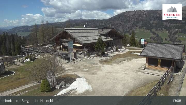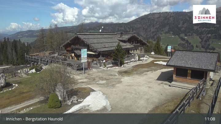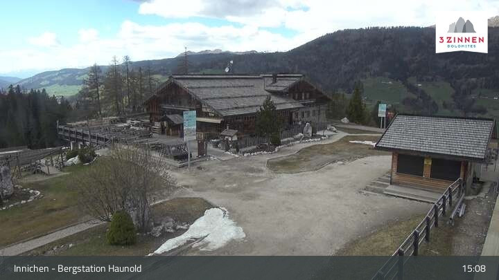 This webcam shows the top station on Haunold mountain in Innichen, and looks over the surrounding Dolomites.