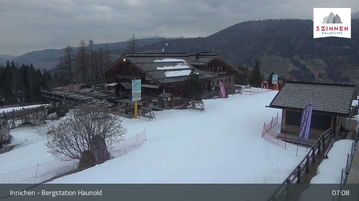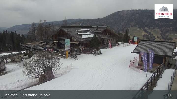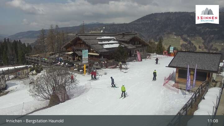 This webcam shows the top station on Haunold mountain in Innichen, and looks over the surrounding Dolomites.