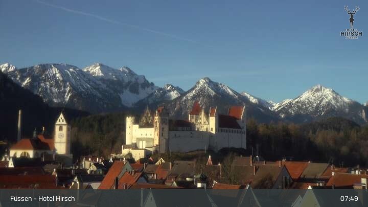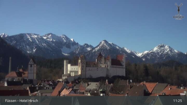View of High Palace in Füssen. Webcam is located at Hotel Hirsch.