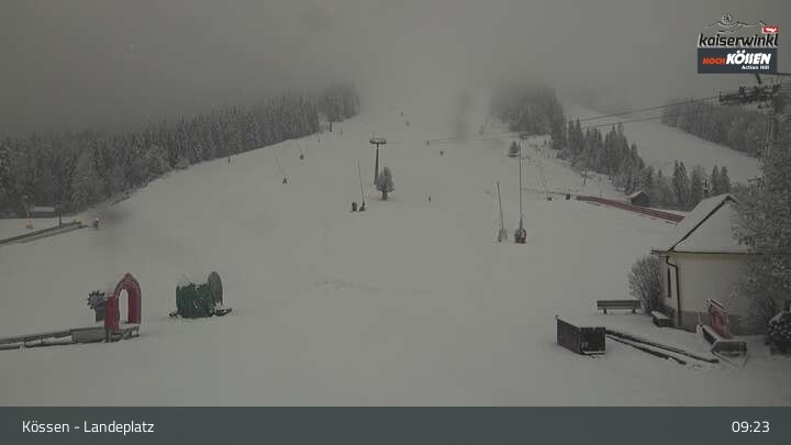 Beautiful view of ski resort Kössen in Tyrol; the webcam is located at the kids' area.