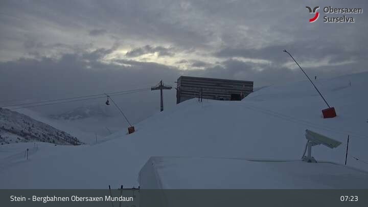 This webcam shows the top station of Misanenga - Untermatt lift in Obersaxen in the Canton of Grisons in Switzerland. The surrounding mountain-scape is perfect for hiking or biking.