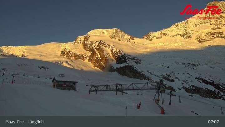 Panoramic view of Fee Glacier from top station Längfluhbahn.