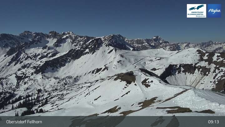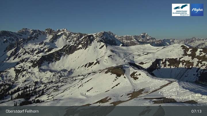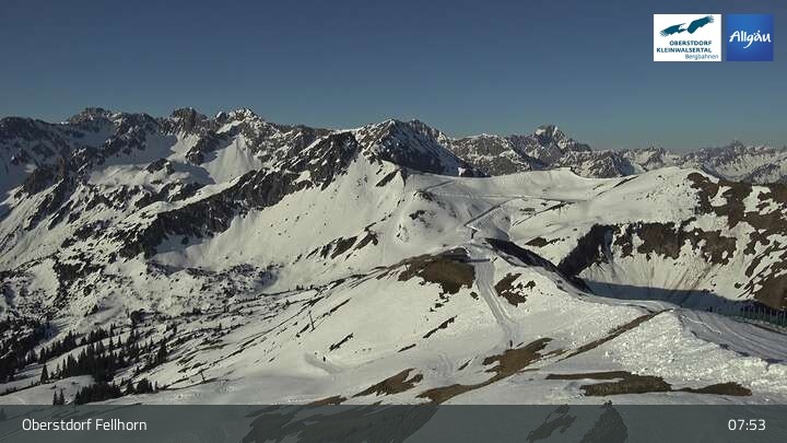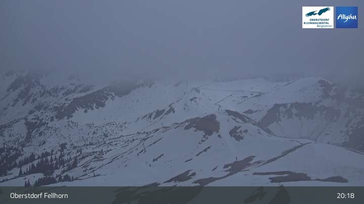 The webcam shows the scenery surrounding the top station of Fellhornbahn in Oberstdorf in Bavaria.
