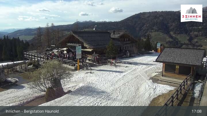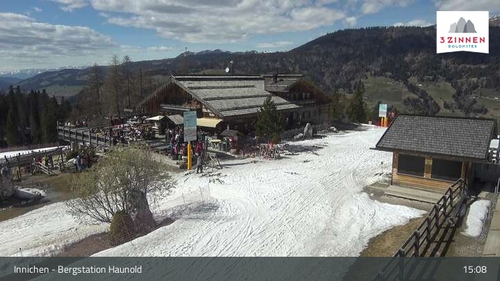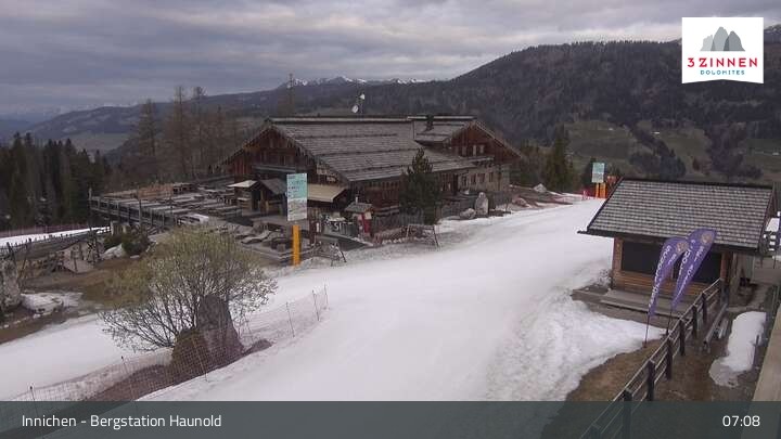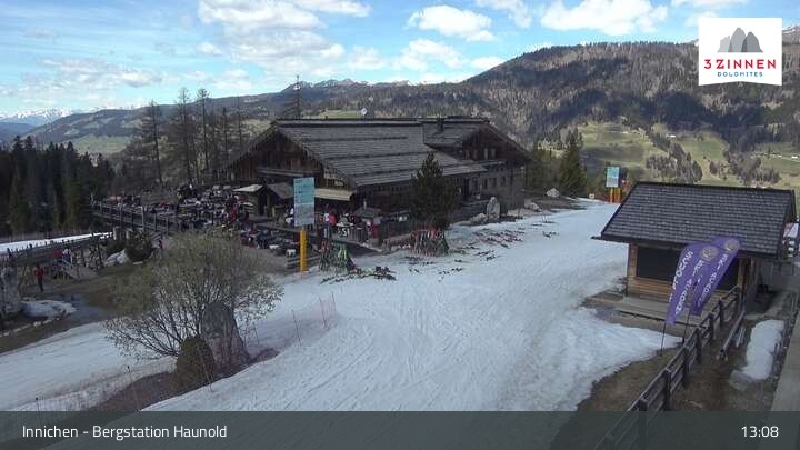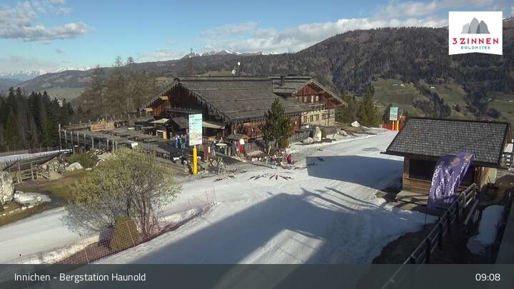 This webcam shows the top station on Haunold mountain in Innichen, and looks over the surrounding Dolomites.