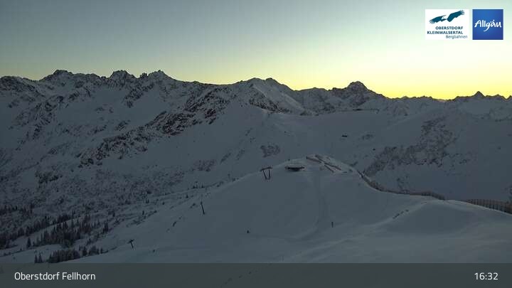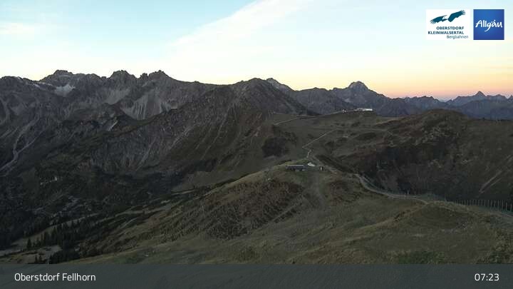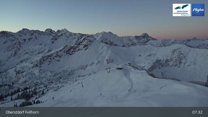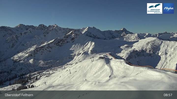 The webcam shows the scenery surrounding the top station of Fellhornbahn in Oberstdorf in Bavaria.