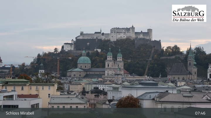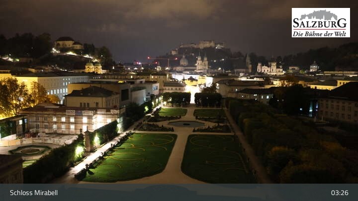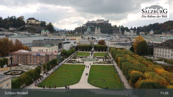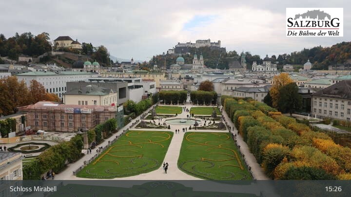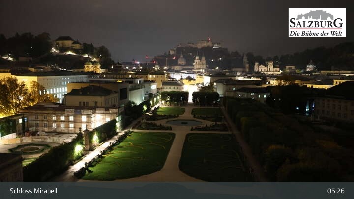 Your view from Mirabellgarten and castle Hohensalzburg in Salzburg, Austria.