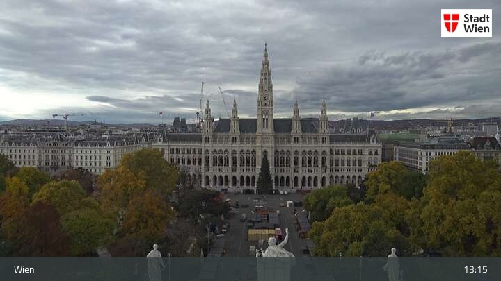 Looking over city centre of Vienna, this webcam shows the Burgtheater as well as the town hall.