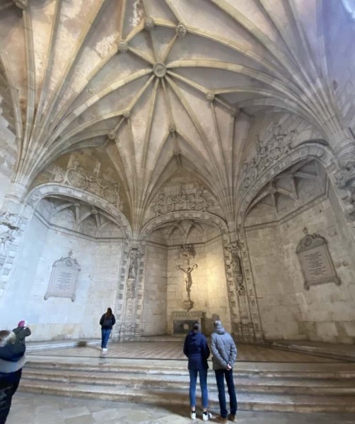 The three-nave hall church of Santa Maria de Belém impresses with its vaulted ceiling without supporting columns, which even survived the 1755 earthquake unscathed. Important figures are buried inside: Vasco da Gama in a marble sarcophagus decorated with maritime symbols, opposite the poets Luís de Camões and Fernando Pessoa. The royal tombs of Manuel I and João III with their wives are enthroned on ornate marble elephants. Visitors can also explore the former refectory with its magnificent azulejos, the old library, and chapter houses. The side wings house the Maritime Museum and the Archaeological Museum.