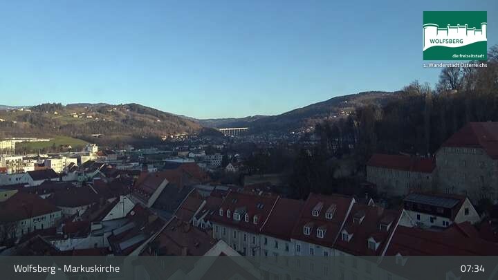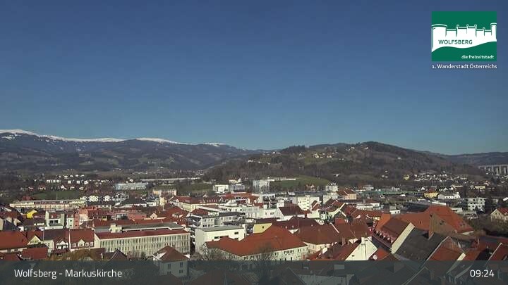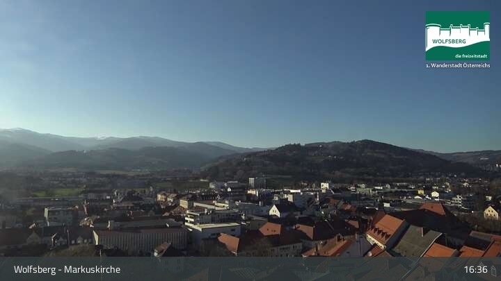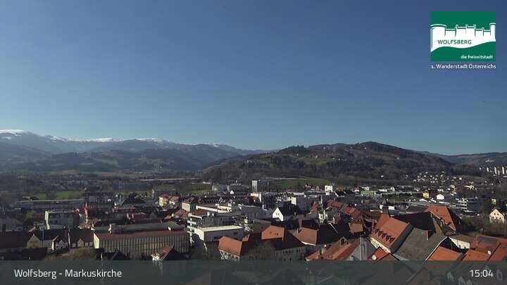 This webcam is located at church Markuskirche in Carinthian town Wolfsberg. It offers the view towards the village and the castle Wolfsberg.