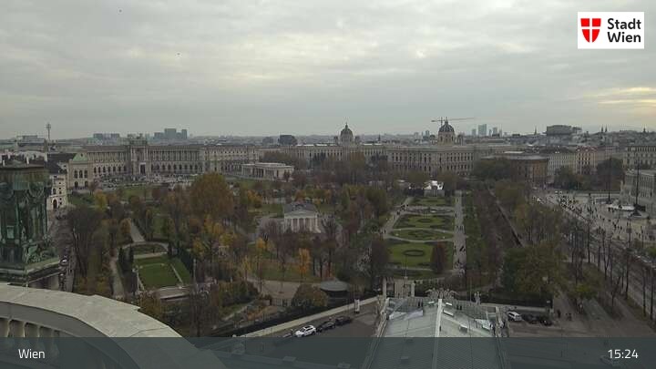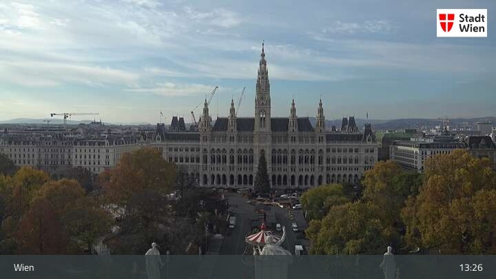 Looking over city centre of Vienna, this webcam shows the Burgtheater as well as the town hall.