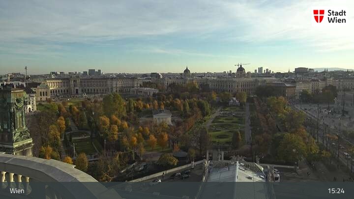 Looking over city centre of Vienna, this webcam shows the Burgtheater as well as the town hall.