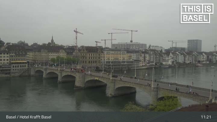 This webcam shows you the Hotel Krafft in the old city of Basel in Switzerland.