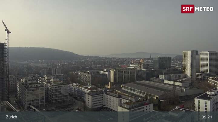 Have a look over the city Zürich in Switzerland. The webcam is positioned at the building of the SRF.