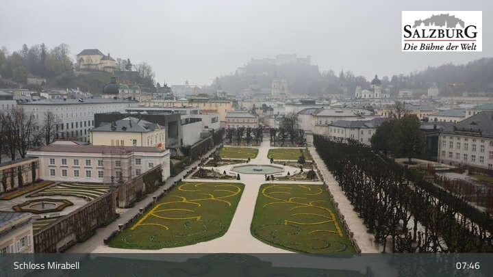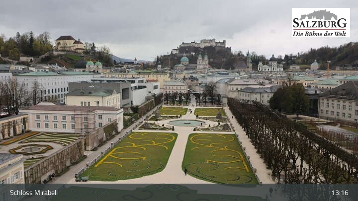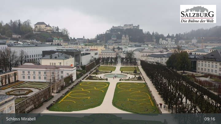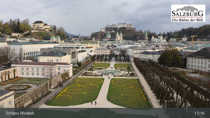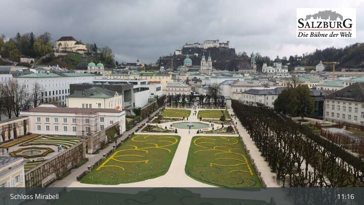 Your view from Mirabellgarten and castle Hohensalzburg in Salzburg, Austria.