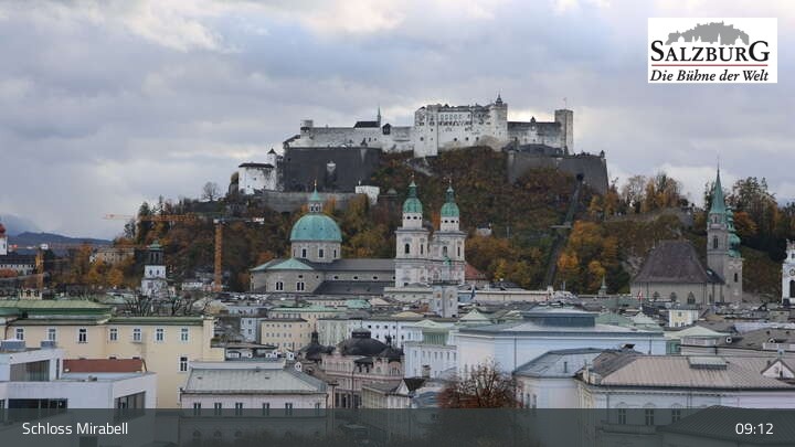 Your view from Mirabellgarten and castle Hohensalzburg in Salzburg, Austria.