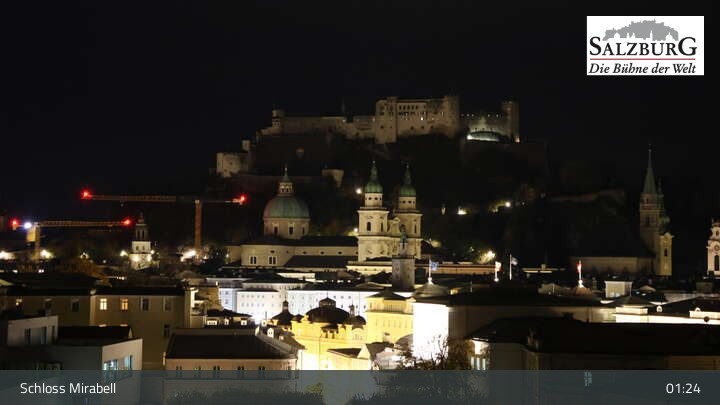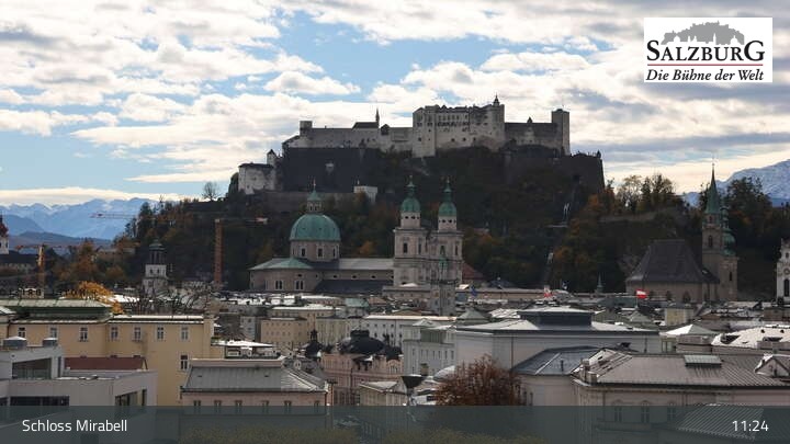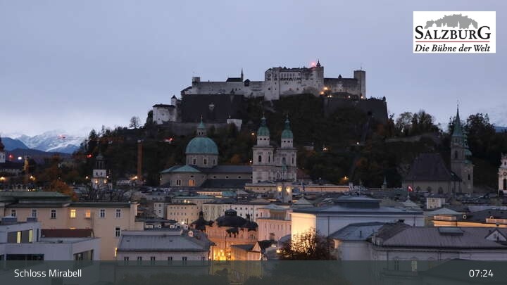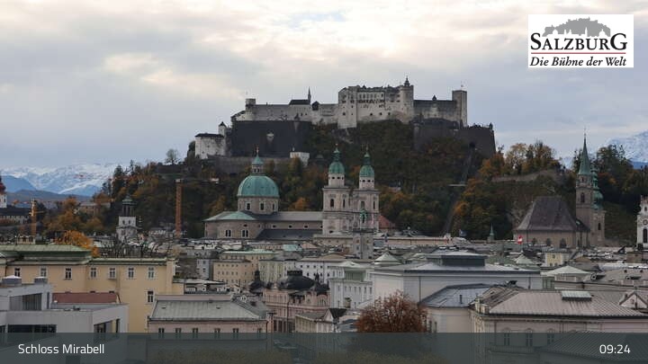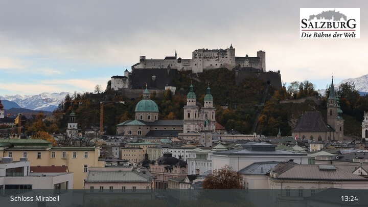 Your view from Mirabellgarten and castle Hohensalzburg in Salzburg, Austria.