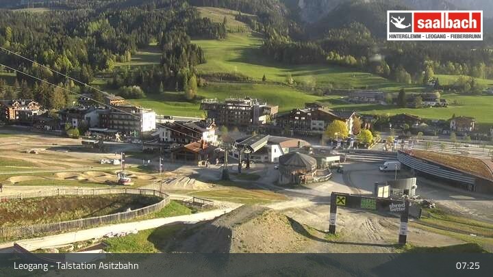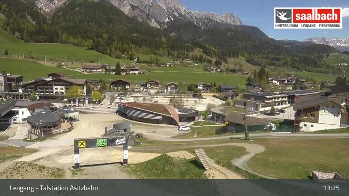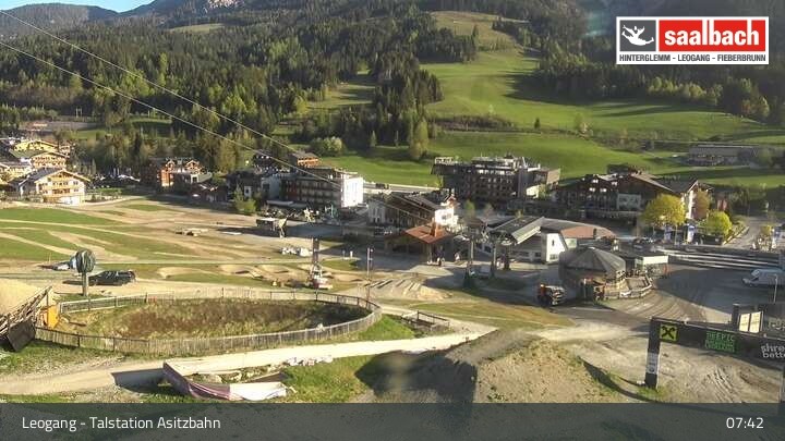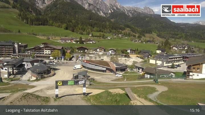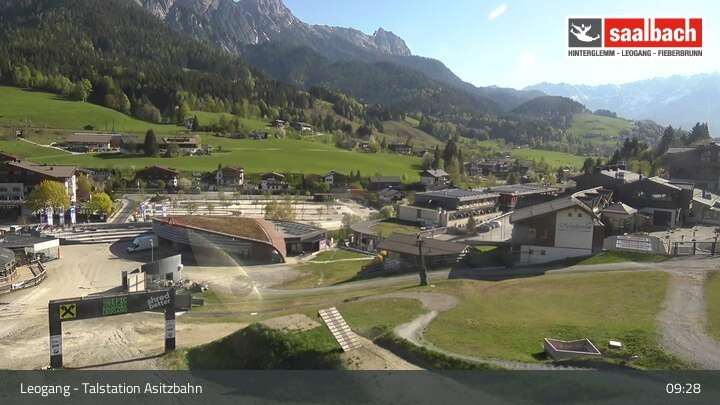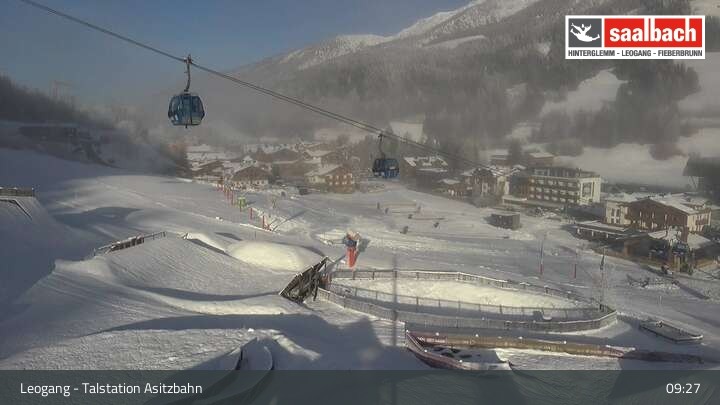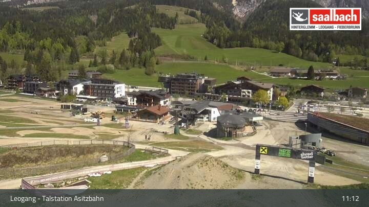 This webcam looks over the base area of Asitzbahn in Leogang.