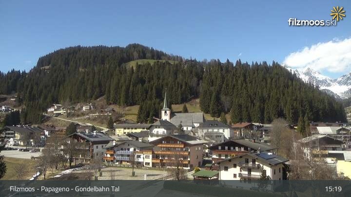 The webcam looks upon Papageno base station in Filzmoos.