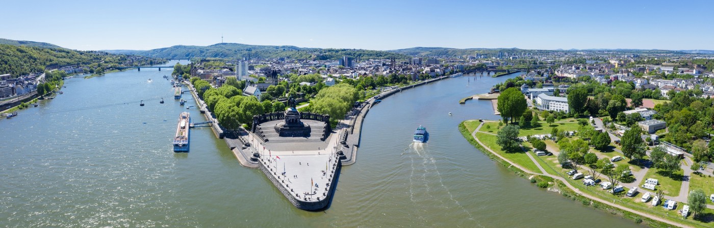 A walk along the Rhine promenade or a ride on the cable car to Ehrenbreitstein Fortress offers perfect opportunities to enjoy the panoramic view from above. During the summer months, the German Corner regularly hosts events and open-air concerts, the most famous being the spectacular "Rhine in Flames", which attracts thousands of visitors every year. The site is also a popular starting point for cycling tours along the Rhine and for boat trips on both rivers.