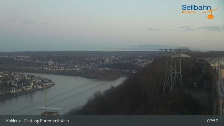 Webcam located at fortress Ehrenbreitstein in Koblenz. You can see the famous cable car.