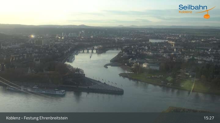Webcam Koblenz - View from fortress and cable car, 160 m
