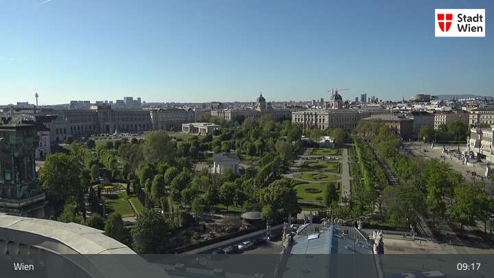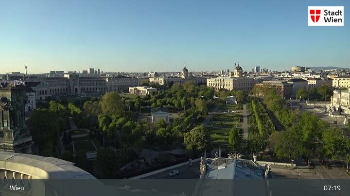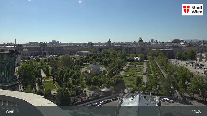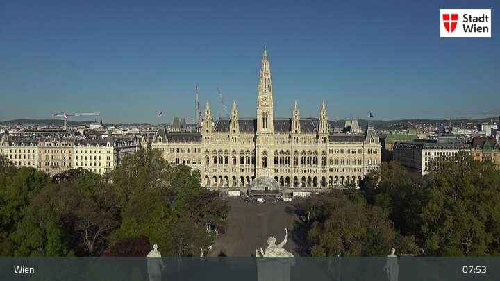 Looking over city centre of Vienna, this webcam shows the Burgtheater as well as the town hall.