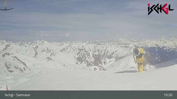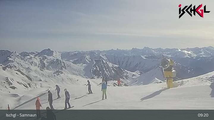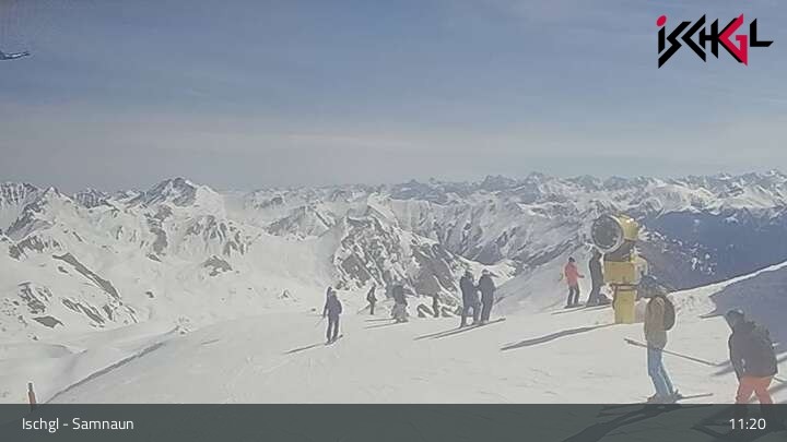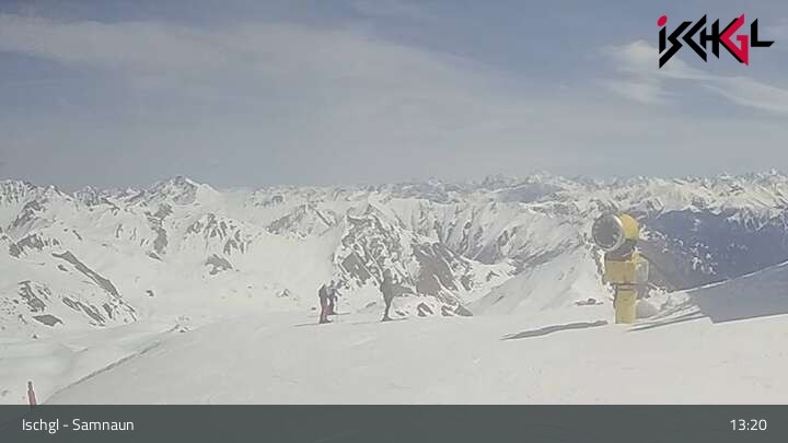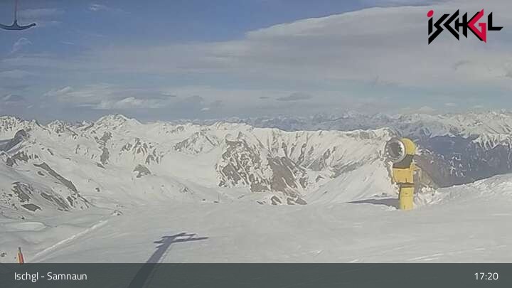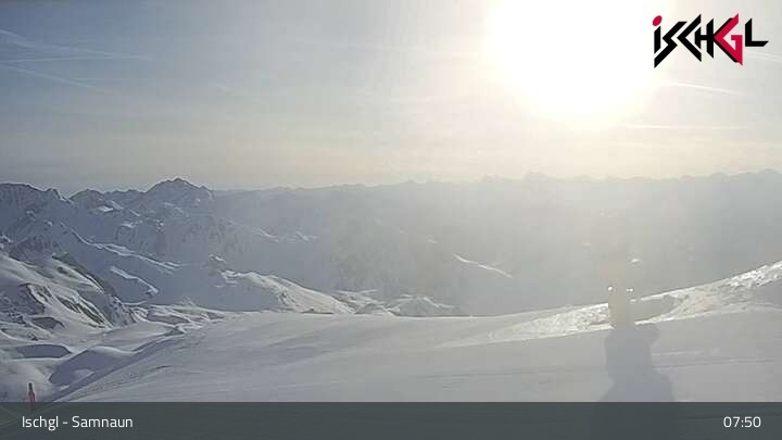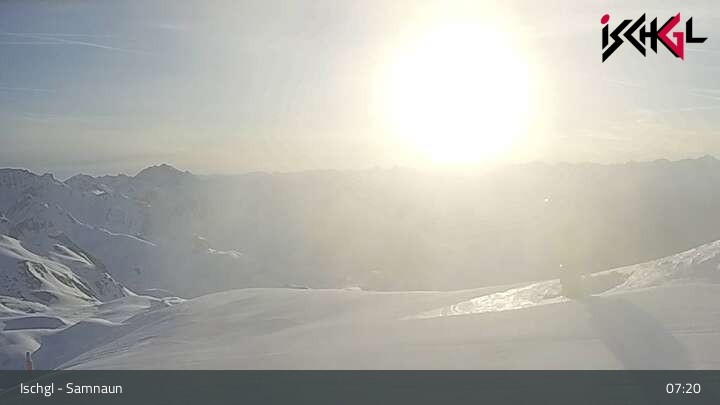View from Greitspitze mountain over the surrounding Alpine landscape.