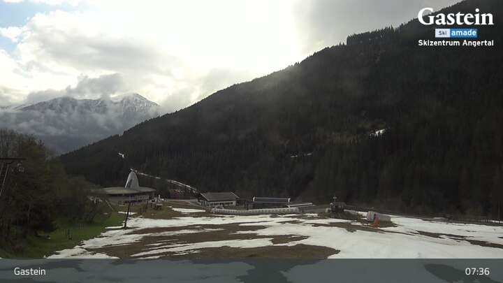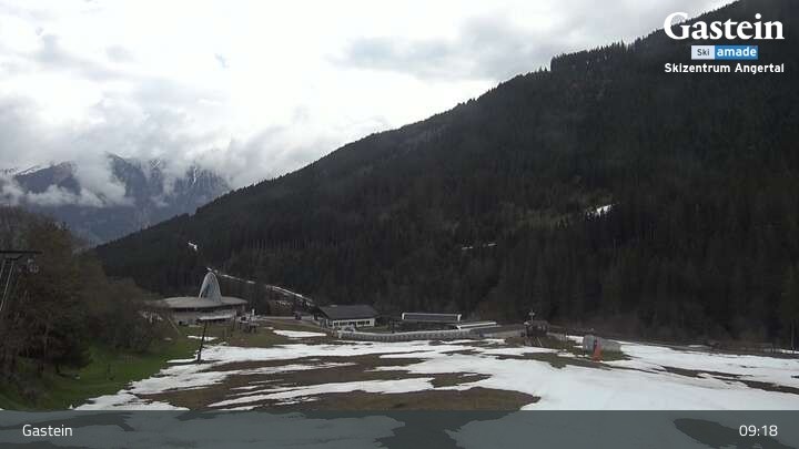 The webcam looks upon ski centre Angertal in the Gastein valley.