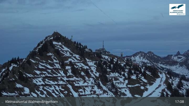 You can see the summit of the Walmendingerhorn and the upper station of its aerial tramway in Kleinwalsertal.